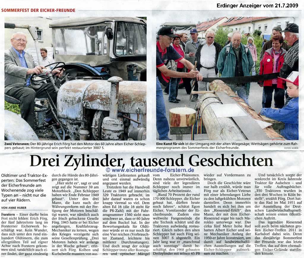 Pressebericht des Erdinger Anzeiger vom 21. Juli 2009