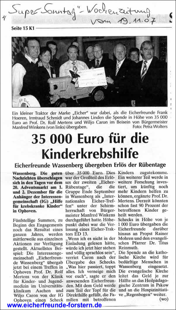 Spende der Eicherfreunde Wassenberg anlässlich der Rübentage 2007