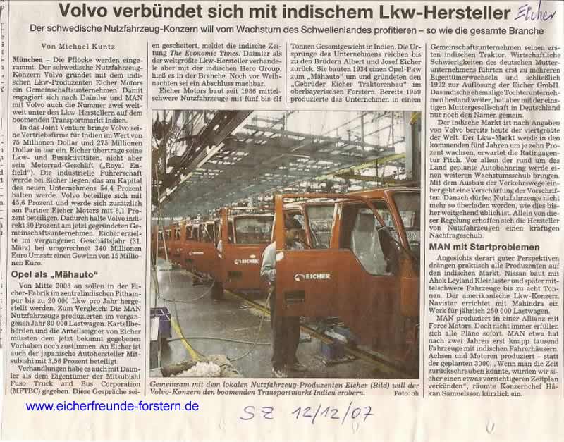 Eicher Indien kooperiert mit Volvo