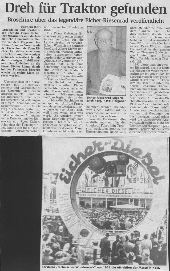 Bericht 1 dreht sich um das Eicherrad.