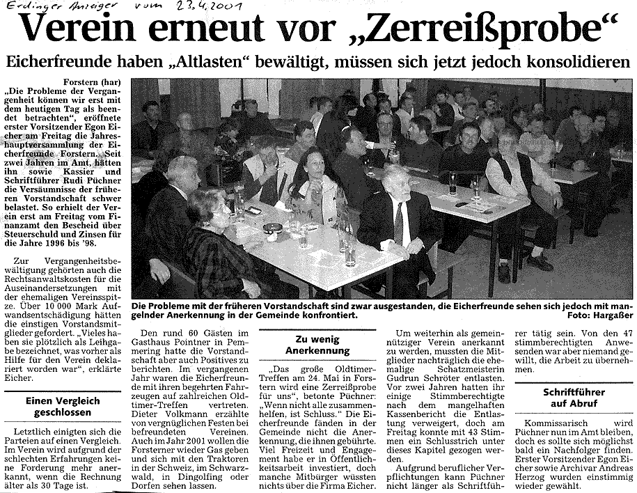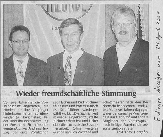 (aus dem Erdinger Anzeiger) von unserer Jahreshauptversammlung am 20.04.2001,