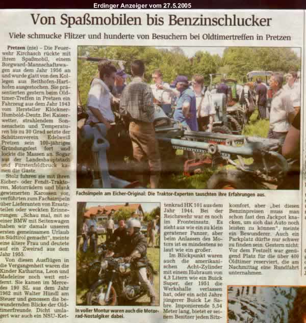 Pressebericht und Bilder aus dem Erdinger Anzeiger vom 27.5.2005